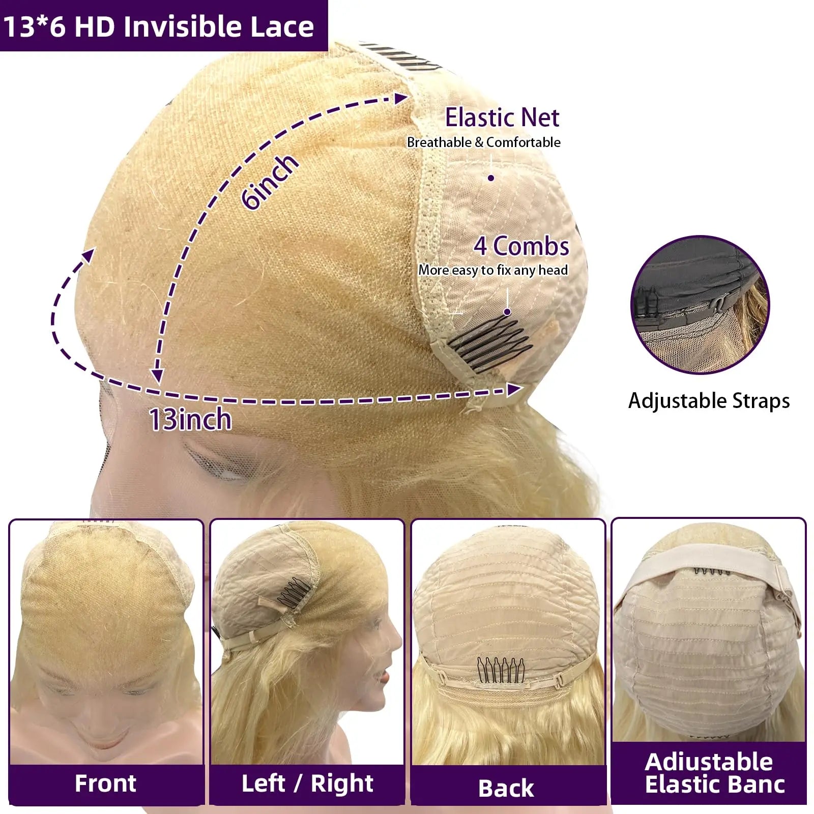 250% 40 42 Inch Water Deep Wave 613 Blonde HD Lace Frontal Wig 13×6 Colored Kinky Curly Wigs 13x5 Raw Lace Front Human Hair Wigs