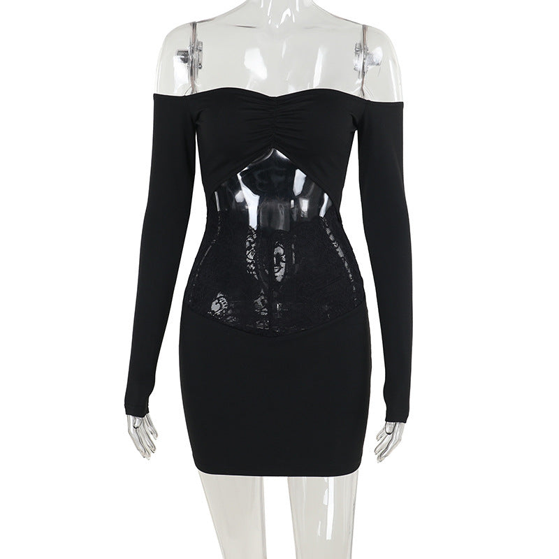 Fashion Off-shoulder Hollow Lace Patchwork Skirt Women