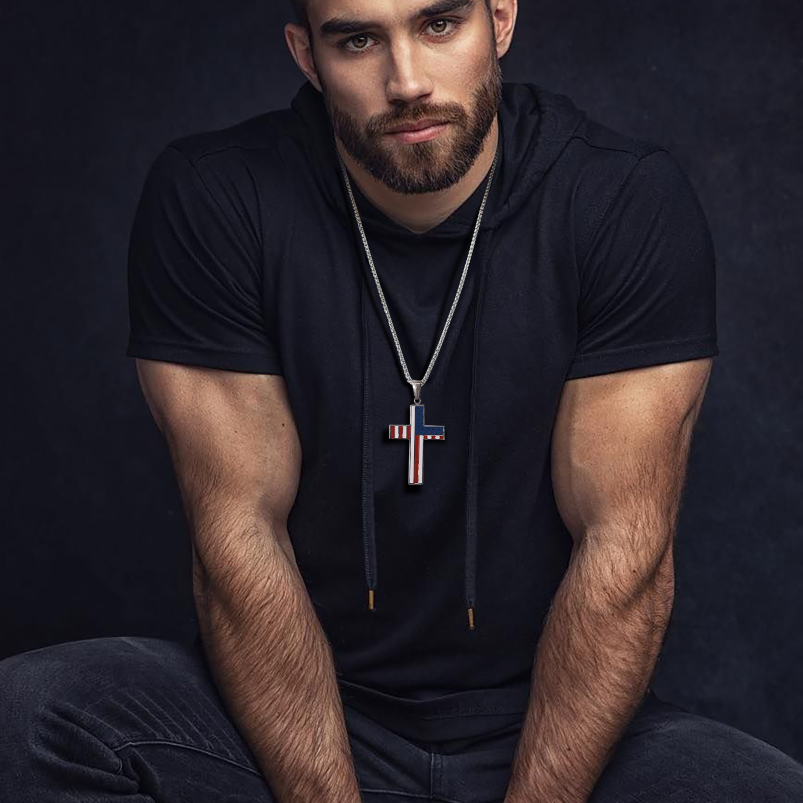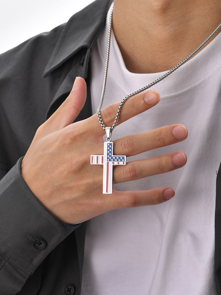 Stainless Steel Surface Smooth Back Sand Corrosion Epoxy Flag Cross Pendant